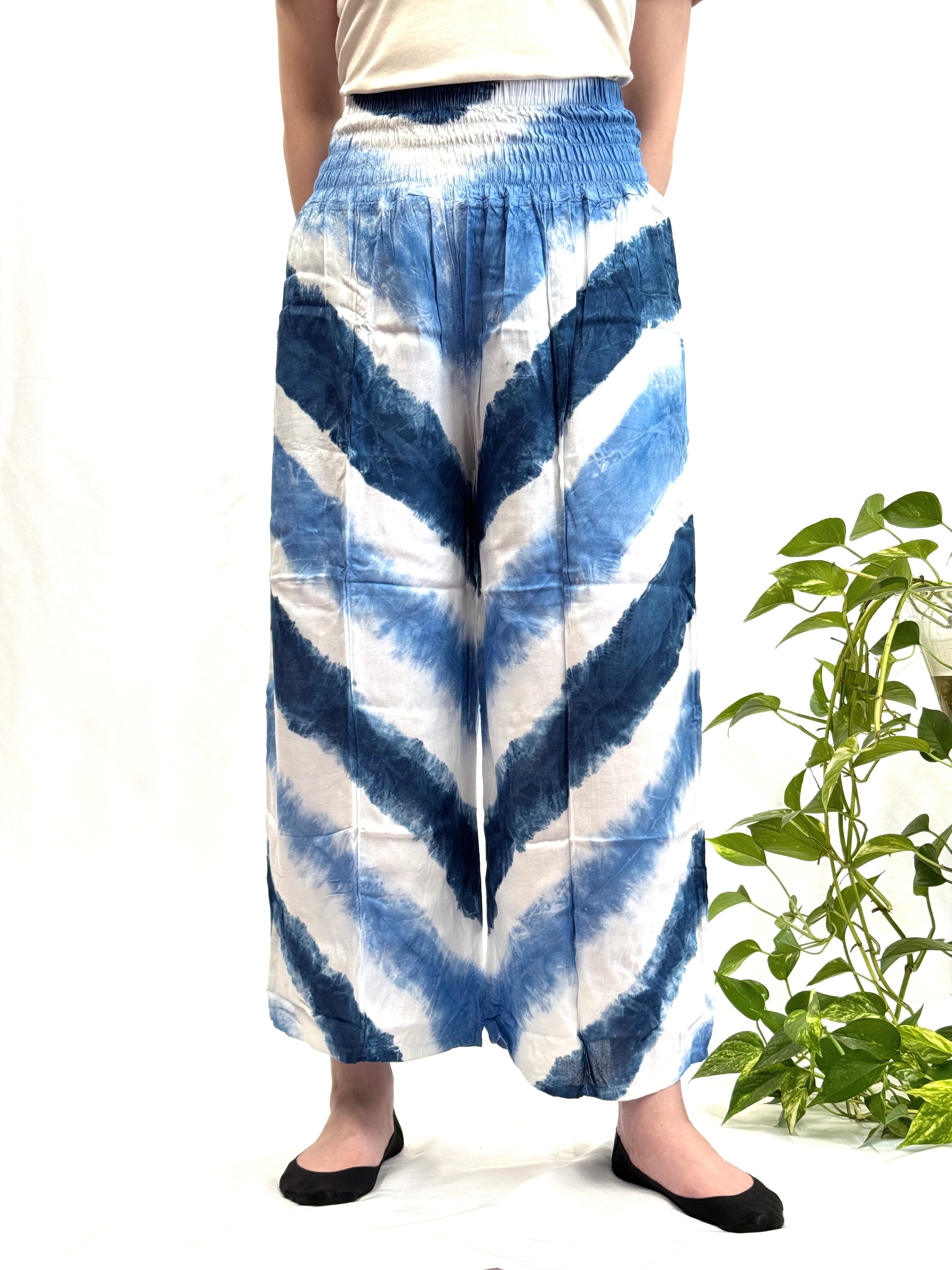 心地よい着心地と爽やかなストライプ柄が魅力のシャーリングパンツです。